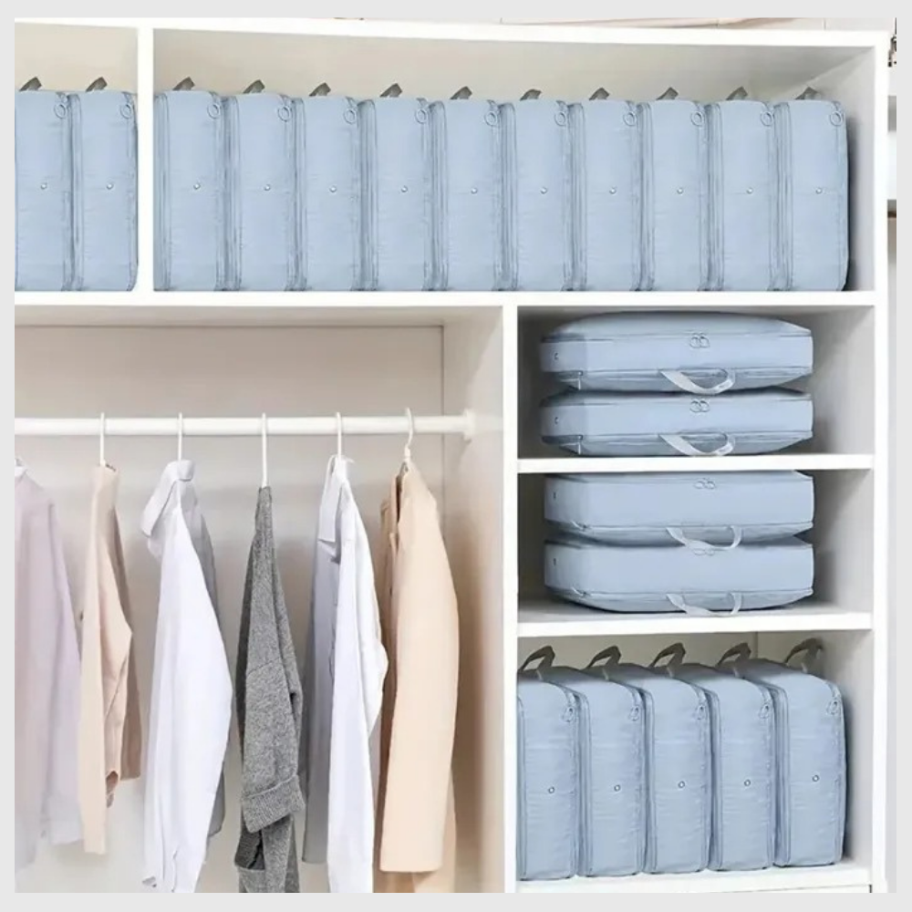Free up space in just a few seconds. With VeroPack™, your closets can finally breathe. Just fold, zip, and compress—no vacuum required. Enjoy simple storage that makes everyday life lighter and your home more organized.